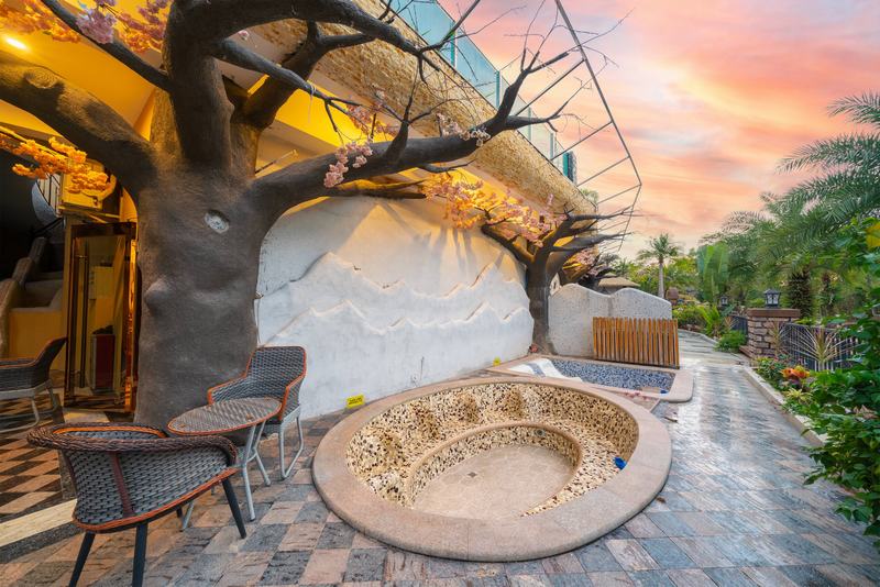 别墅配置:【观鱼池】 【碰碰机】 【乒乓球】 【烧烤炉】 【电烤炉】 【桑拿房】 【美式台球】 【拉杆足球】 【网红心型打卡点】 【自动麻将桌2张】 【坐躺式按摩泡池】 【全套设备自助厨房】 【免费入户私家温泉池 】 【户外花园泳池,约28m²】 【独立专业KTV包厢(带卫生间)】 Ps:A、B栋中间的泳池可共用(无边大泳池)。 别墅标配:配有:电饭煲,炒锅,刀具,菜篮,碗筷,茶具,电水壶,烧烤炉,电烤炉,毛巾,一次性洗刷用品 备注:别墅只提供设备,请自备食材,油盐酱醋,烧烤碳和铁网 房型分布:12房20床一楼: 房①:2张1.5米床(独卫带阳台泡池) 负一: 房②:2张1.5米床(独卫带阳台泡池) 房③:2张1.5米床(独卫带阳台泡池) 房④:1张1.8米床(独卫带阳台泡池) 房⑤:1张1.5米床 (汽车房,独卫) 房⑥:2张1.5米床(独卫带阳台泡池) 房⑦:2张1.5米床(独卫带阳台泡池) 负二: 房⑧:2张1.5米床(独卫) 房⑨:1张1.8米床(独卫) 房⑩:1张1.8米床(独卫) 房11:2张1.5米床(独卫) 房12:2张1.5米床(独卫) 入住须知,请认真阅读:1、入住人数限制:4房8人以下,5房10人以下,6房12 人以下,7房15人以下, 8房18人以下,9房22人以下。( 如实际入住人数超出上述限定,请提前和接待人员沟通。) 2、入住别墅需登记身份证,一人一证,无证件者恕不接待; 3、入住时间为当天14:00后,退房时间为次日中午12:00前。(如需提前入住或延时退房,请咨询接待人员。) 4、入住别墅请爱护别墅环境卫生。(使用过的餐具用品需要清洁干净卫生太赃太乱扣300元卫生费) 5、入住期间任何大型家具不得随意挪动,电器设施不会使用或有故障时,请致电管家进行处理。(如有损坏照价赔偿) 6、园区禁止碳烤,别墅免费提供电烤炉一个,以供烧烤使用。(禁止花园碳火烧烤,一经发现将被管理处停电停水。) 7、订购价格已包含一池温泉水(注:非恒温温泉池,一池水大概能维持 1-2小时的温度)温泉热水默认供应时间为:20:00-23:00) 8、禁止黄赌毒,一经发现报警处理,房费、订金、押金不退还。 9、入住收取1000元押金,退房当天下午6点退回。(退房时无损坏任何物品全额退回押金) 10、房费不含酒水和食物,烧烤食材需要提前两小时预订才能购买。 11、别墅提供2个车位,超出车辆由管家指引到指定地点安放。(出入园区收取停车费,入园半个小时内,免费。后续按每三个小时收取4元,当天封顶16元。) 12、根据公部门及物管规定,22:30后需保持安静,切勿大声喧哗(KTV统一22:00关闭,违规一经发现物管会以停电处理)